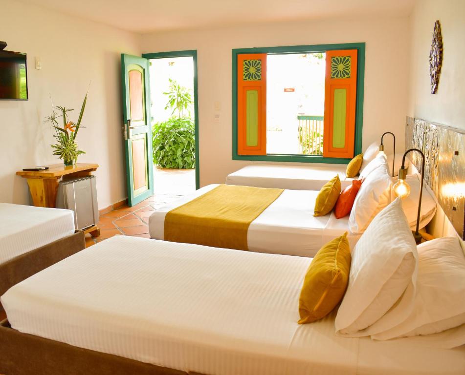 La Finca Hotel es un hotel de estilo rústico rodeado de exuberantes jardines y tumbonas. Se encuentra en las colinas de Montenegro. Las habitaciones de la Finca Hotel Los Girasoles son amplias y presentan suelo de baldosa marrón y colcha tejida a mano. Todas disponen de TV por cable y baño elegante con tocador de madera de estilo clásico. La Finca Hotel sirve un desayuno americano todos los días que incluye granola, fruta de temporada y panecillos. El bar restaurante prepara especialidades regionales y cócteles exóticos. El establecimiento Hotel Finca Los Girasoles está a 9 km del parque nacional del Café y a 23 km del jardín botánico de Calarcá. Hay aparcamiento gratuito y servicio de enlace con el aeropuerto.
